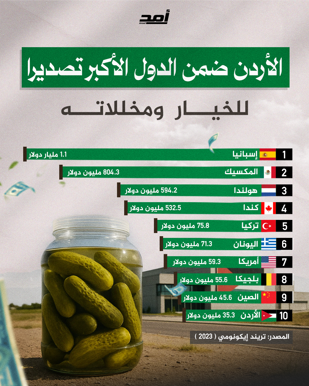 الأردن ضمن الدول الأكثر تصديرا للخيار ومخللاته